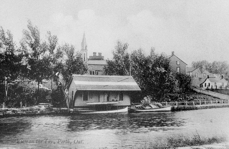 The Hicks family boathouse on the Tay Canal, Perth. Postcard, c.1900-1910.